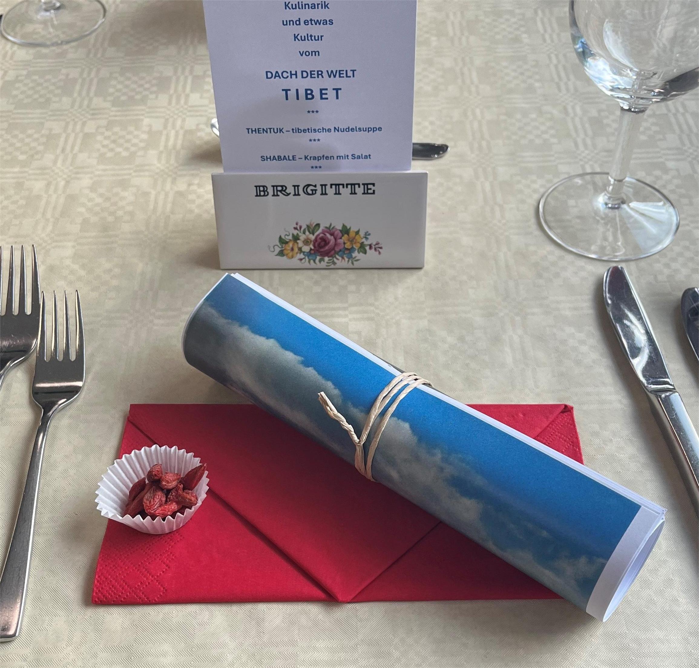 Unterstützt wurde sie unter anderem von einer unserer Seniorin, die mit viel Engagement bei der Organisation, dem Eindecken der Tische und auch während des Abends mit spannenden Fakten und Erzählungen über Tibet beitrug. Ihr Einsatz trug wesentlich zur Atmosphäre und zum Gelingen des Abends bei.