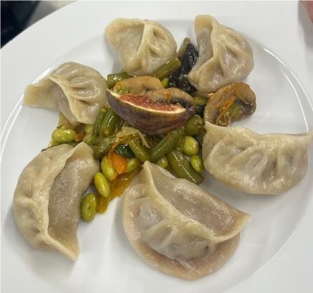 Unsere Service-Mitarbeiterin, die selbst tibetische Wurzeln hat, bereitete mit viel Liebe hausgemachte Momos zu – gefüllte Teigtaschen, die zu den traditionellen Speisen Tibets gehören. Ihre persönliche Verbindung zur tibetischen Kultur machte den Abend noch authentischer und besonders stimmungsvoll.